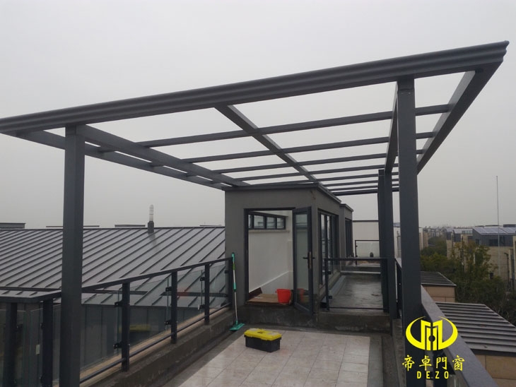 陽光房簡述:該項目為露臺光伏雨棚,頂面覆蓋太陽能光伏板,可以發電自用或者賣電獲得經濟收益,夏天還可以起到遮陽隔熱效果,骨架為3.0mm鋁合金骨架,替代以往光伏常用的輕鋼龍骨之類的,外觀美觀,另外方便后期立面封門窗。