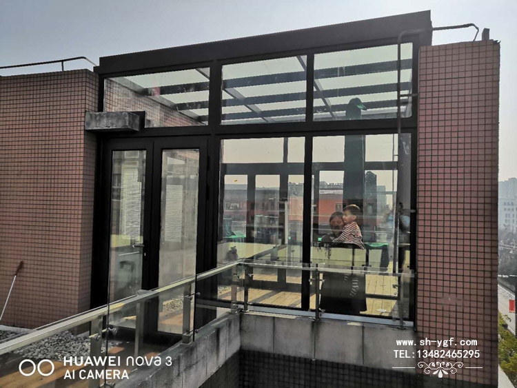 陽光房簡述:該陽光房主要功能為寶貝娛樂活動功能,南面采用3+1斷橋75系列折疊門,北面斷橋雙平開門,玻璃都采用LOW-E鍍膜玻璃。