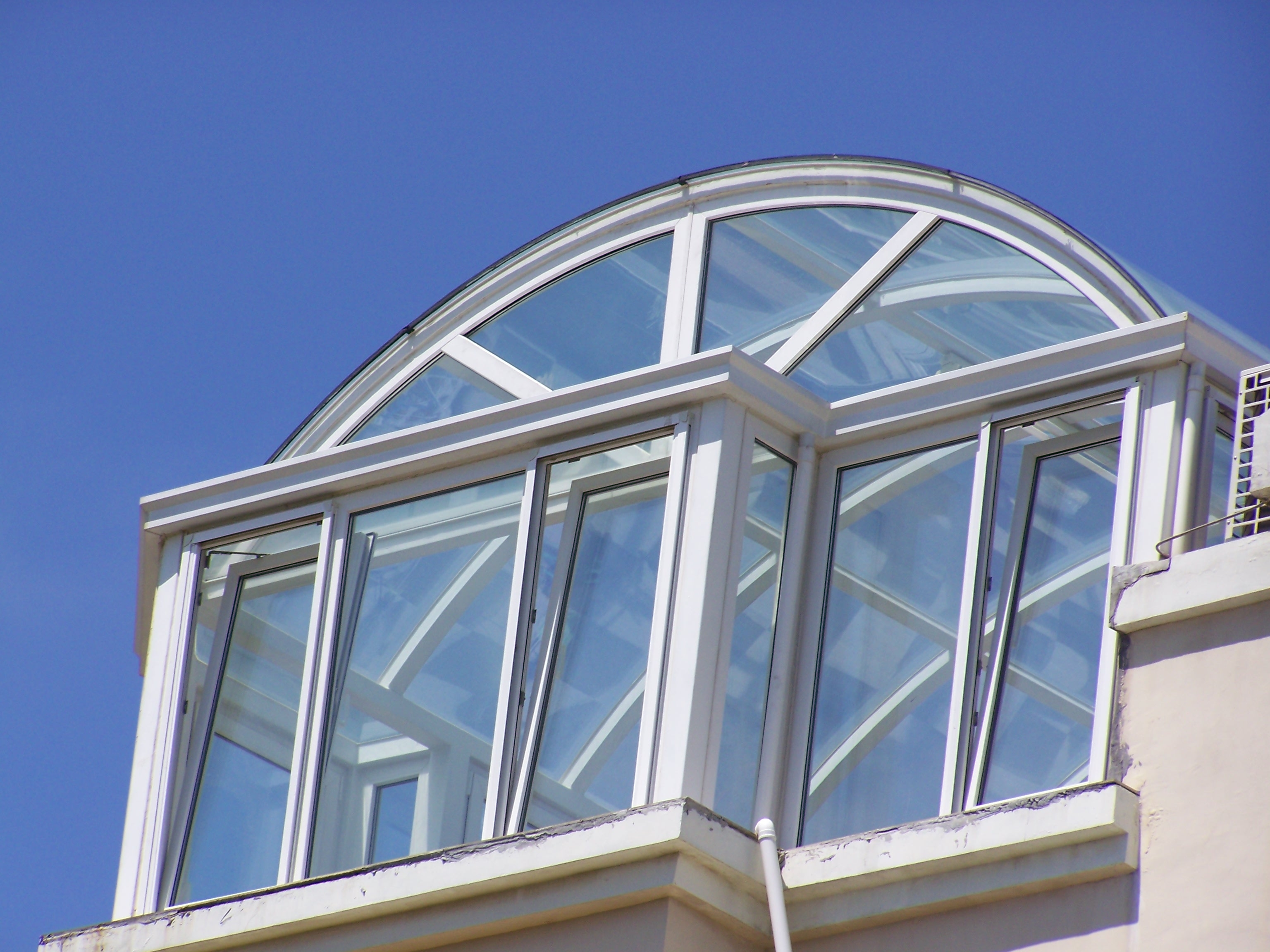 頂面采用圓弧處理的鋼化夾膠玻璃,鋁合金骨架彎圓處理,