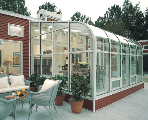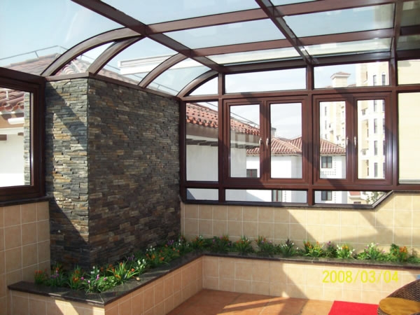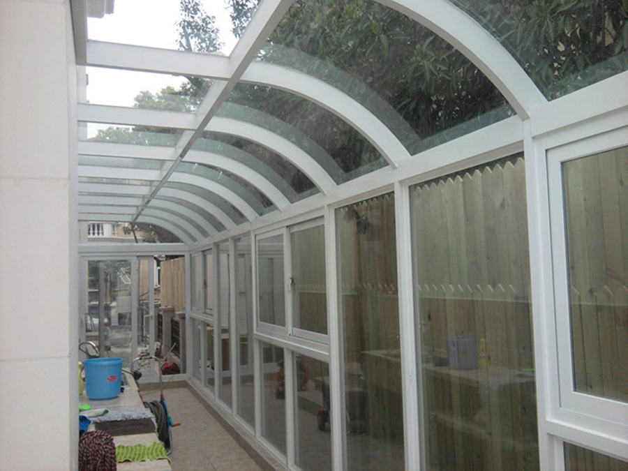 陽光房頂面采用彎鋼化夾膠雙鋼化玻璃,很適合陽臺露臺